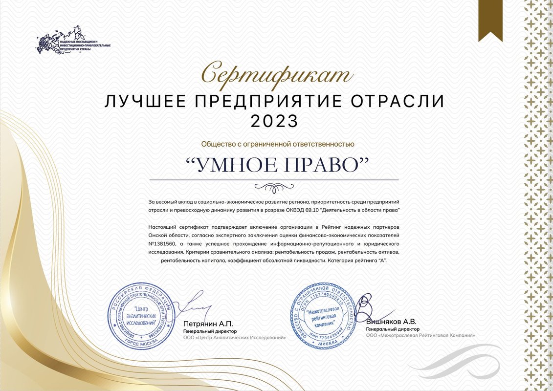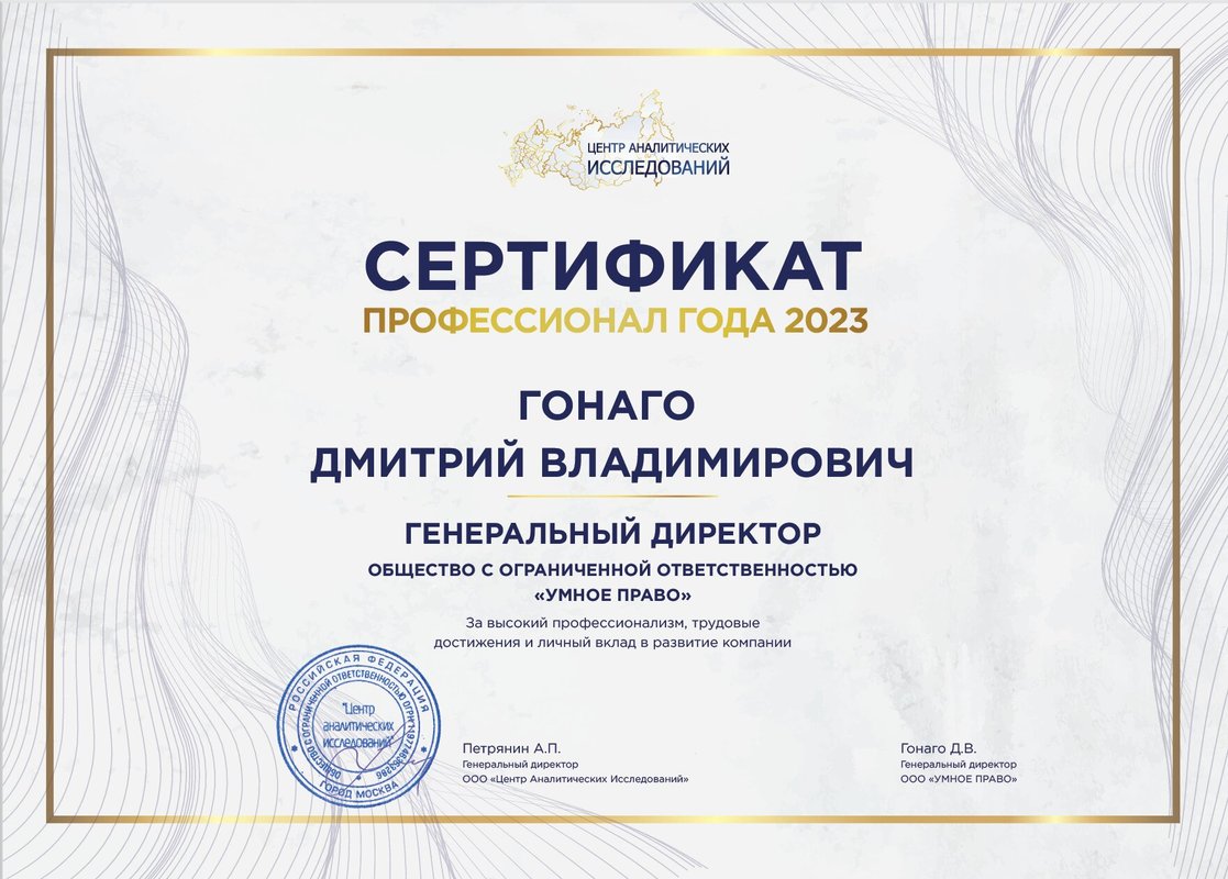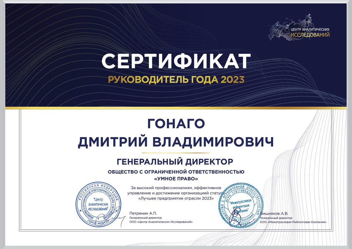 Благодаря профессионализму Дмитрия Владимировича, качественному и ответственному выполнению должностных обязанностей, целеустремленности и лидерским качествам, ООО "УМНОЕ ПРАВО" достигло значительных успехов и занимает достойные позиции на рынке аутсорсинга и консалтинга.