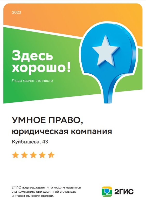 Благодарю компанию «Умное право» и лично Дмитрия Владимировича Гонаго за то, что теперь могу дышать спокойно!